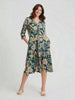 Elevate your seasonal wardrobe in this form-flattering fit and flare dress. Designed in a super soft 'peach touch' polyester elastane stretch fabric. This piece boasts a beautiful knot front detail and a swishy skirt for added movement. Falls to a mid-length with ¾ sleeves, v neck and princess seams for shape.