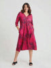 Elevate your seasonal wardrobe in this form-flattering fit and flare dress. Designed in a super soft 'peach touch' polyester elastane stretch fabric. This piece boasts a beautiful knot front detail and a swishy skirt for added movement. Falls to a mid-length with ¾ sleeves, v neck and princess seams for shape.