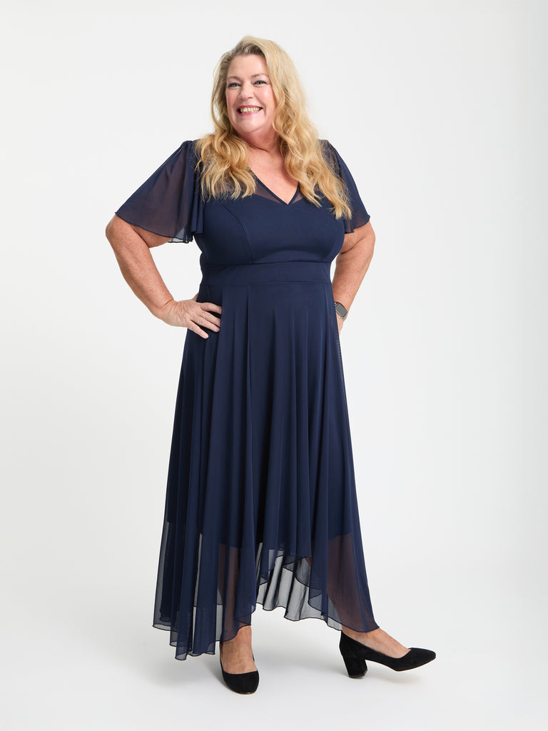100's of women were introduced to Scarlett & Jo through the original Tilly dress. Treat yourself to a gorgeous Hi-Lo Dress. It is extraordinary beautiful dress, with a V front and shaped lined sweetheart detail. This is a stunning fully lined dress that does not disappoint with the tones of this signature print. The dress that is designed to breathe confidence as it is made in our POWERFIT® stretch mesh features a gathered 1940s shoulder line and pretty angel sleeves to give upper arm coverage. Designed with our inbuilt MagicBand® to give you that unmistakable Scarlett and Jo silhouette so curves are elegantly accentuated and hidden support is provided. The beautiful dress skirt drapes gracefully to the ground with a Hi-Lo effect. Perfect for any social event from wedding guest dress to prom dress to party dress.