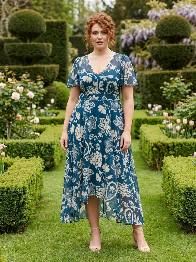 100's of women were introduced to Scarlett & Jo through the original Tilly dress. Treat yourself to a gorgeous updated print Tilly Hi-Lo Dress. It is extraordinary beautiful floral print, with a V front and shaped lined sweetheart detail. This is a stunning fully lined dress that does not disappoint with the tones of this signature print. The dress that is designed to breathe confidence as it is made in our POWERFIT® stretch mesh features a gathered 1940s shoulder line and pretty angel sleeves to give upper arm coverage. Designed with our inbuilt MagicBand® to give you that unmistakable Scarlett and Jo silhouette so curves are elegantly accentuated and hidden support is provided. The beautiful dress skirt drapes gracefully to the ground with a Hi-Lo effect. Perfect for any social event from wedding guest dress to prom dress to party dress.