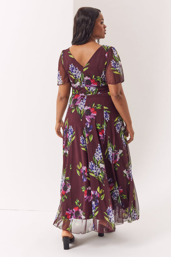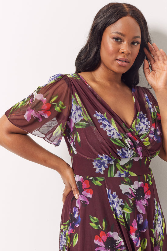 Isabelle Ruby Multi Float Sleeve Maxi Dress