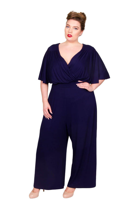 Re-introducing the most comfortable Jumpsuit ever worn! Inspired by the 1940s, the jumpsuit is easy to get in and out of! This piece comes with a magic, in-built corset waistband to help accentuate curves and act as hidden support. With a self-tie fastening and angel wing sleeves, a practical yet stylish look is born. Detachable shoulder pads help broaden the shoulder line. A wide-cut trouser is perfect for lounging.