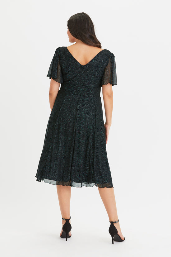 Victoria Blue Glitter Angel Sleeve Mesh Midi Dress