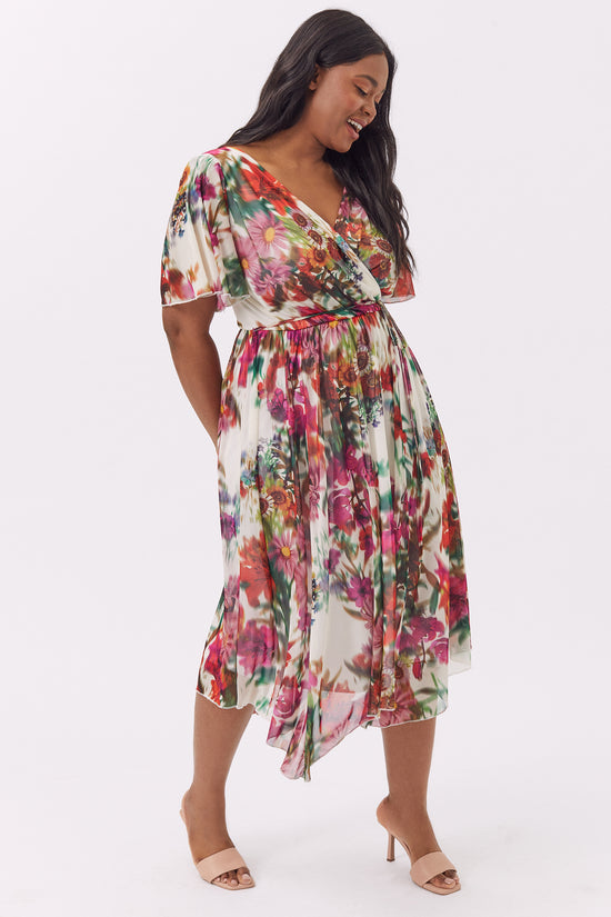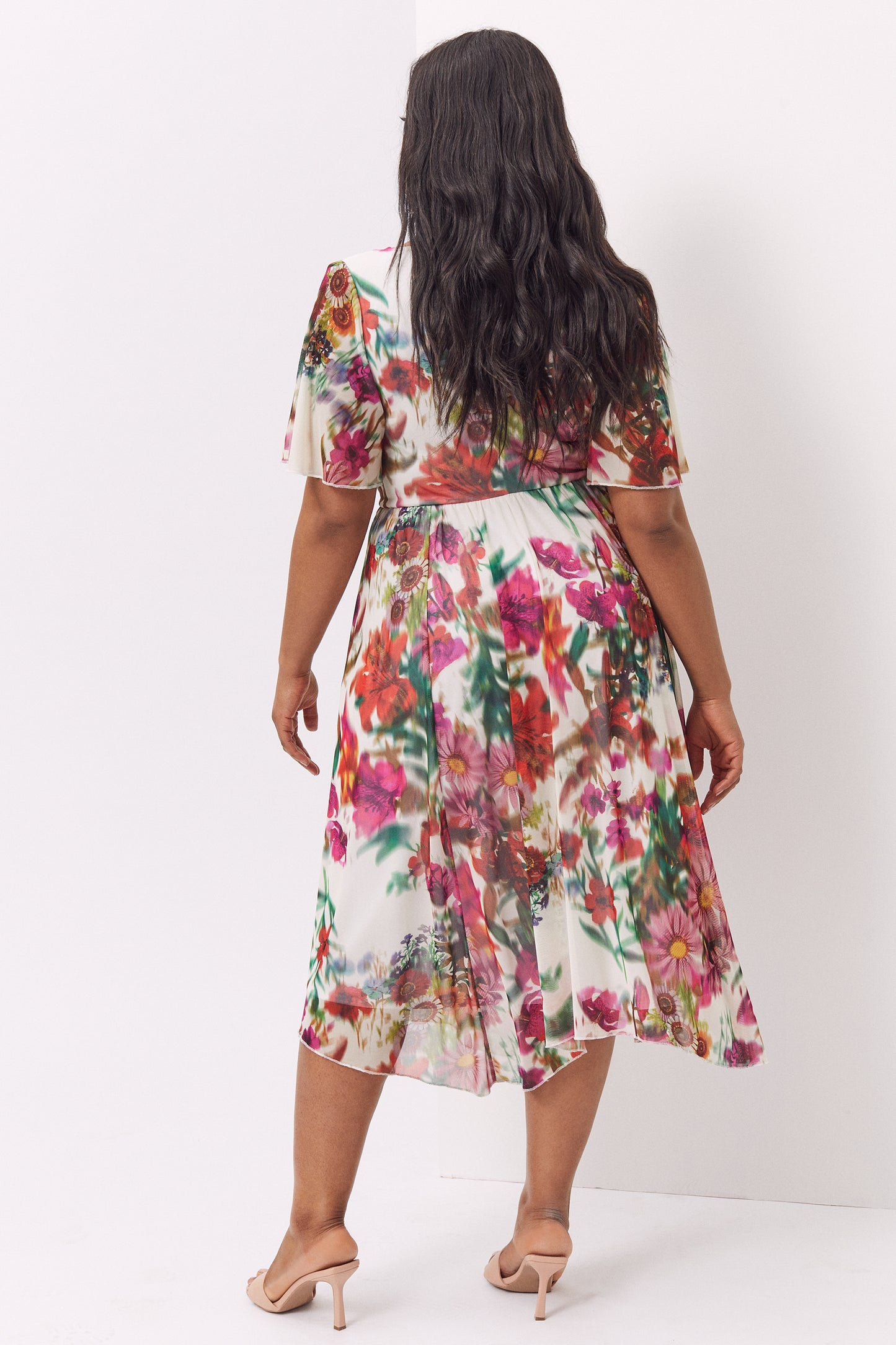 This is a fully lined dress and is crafted from a super soft printed stretch POWERFIT® mesh fabric. The beautifully shaped crossover bodice together with a full hanky hem skirt elegantly falls at a midi length on taller ladies and maxi length for shorter ladies. Finished with angel sleeves and elasticated MagicBand® to cinch you in.