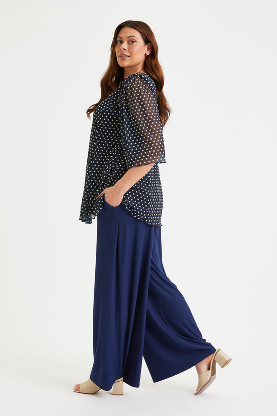 A fresh addition to your work-wear this season, this wide leg pant is the perfect tailored piece. The high rise design adds extra fit and comfort. Crafted from our POWERFIT® special peach touch jersey with MagicBand® and side pockets. A great lounge pant that can be dressed up or down..