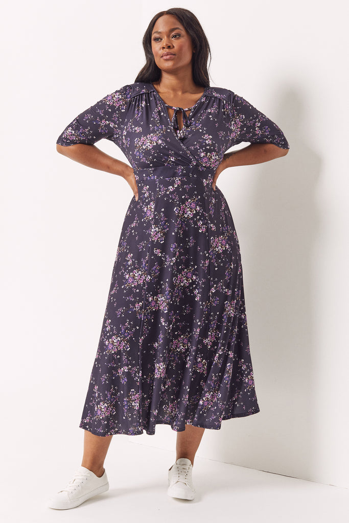 Navy Multi '1940s' Tie and Wrap Dress
