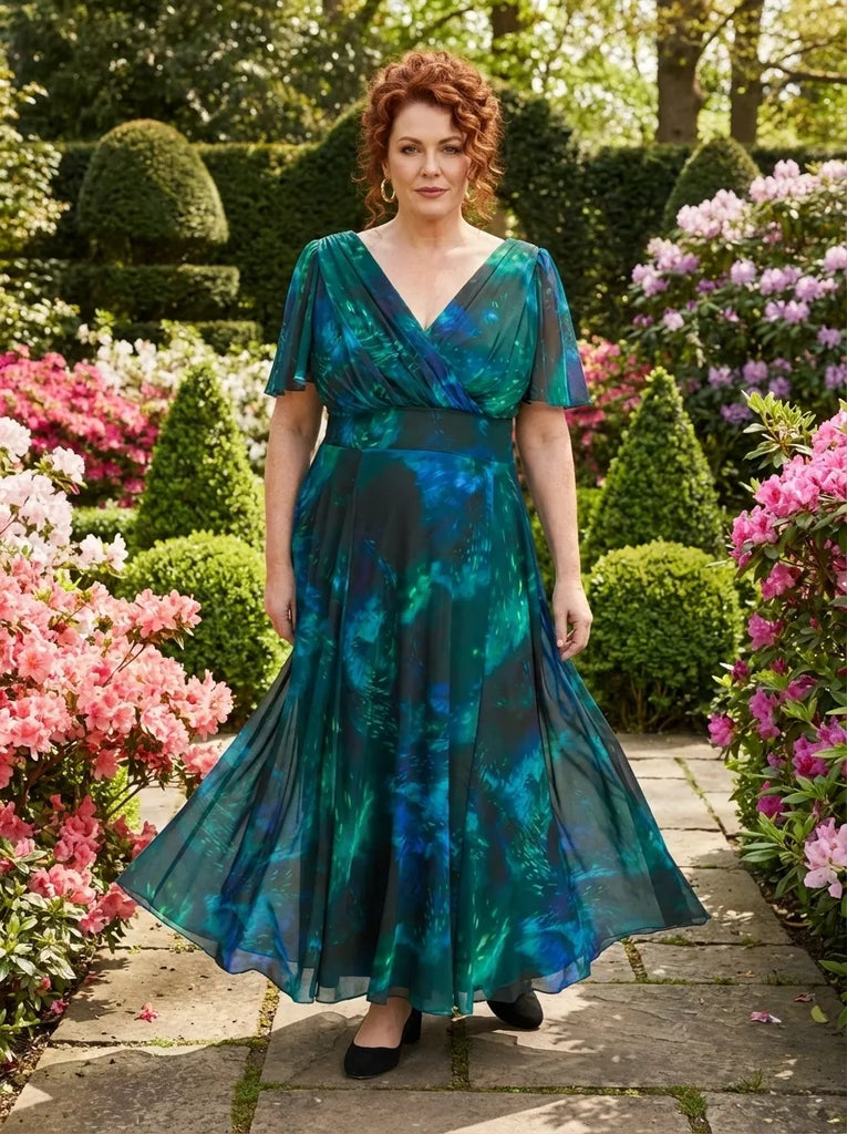 Petite Isabelle Green Blue Marble Float Sleeve Maxi Dress