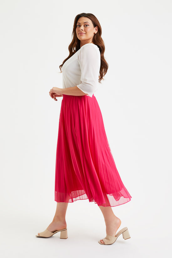 A much loved vintage inspired fully lined pleated skirt. This skirt features a MagicBand® and can be worn with a multitude of different tops. Its made in Scarlett & Jo's POWERFIT® soft stretch mesh. This skirt is calf length, a lot of comfort, fun and confidence in wear.