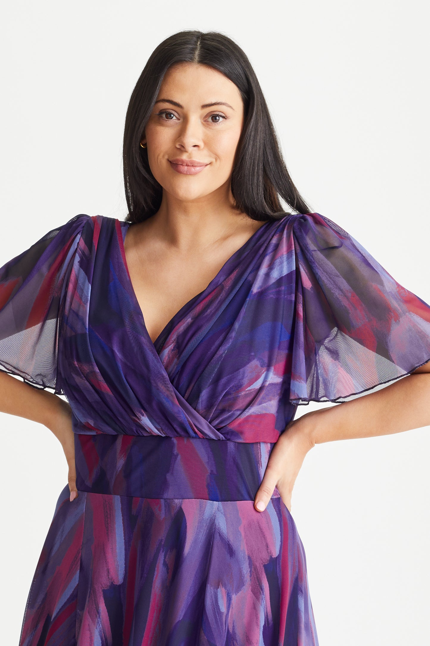 Isabelle Indigo Magenta Float Sleeve Maxi Dress