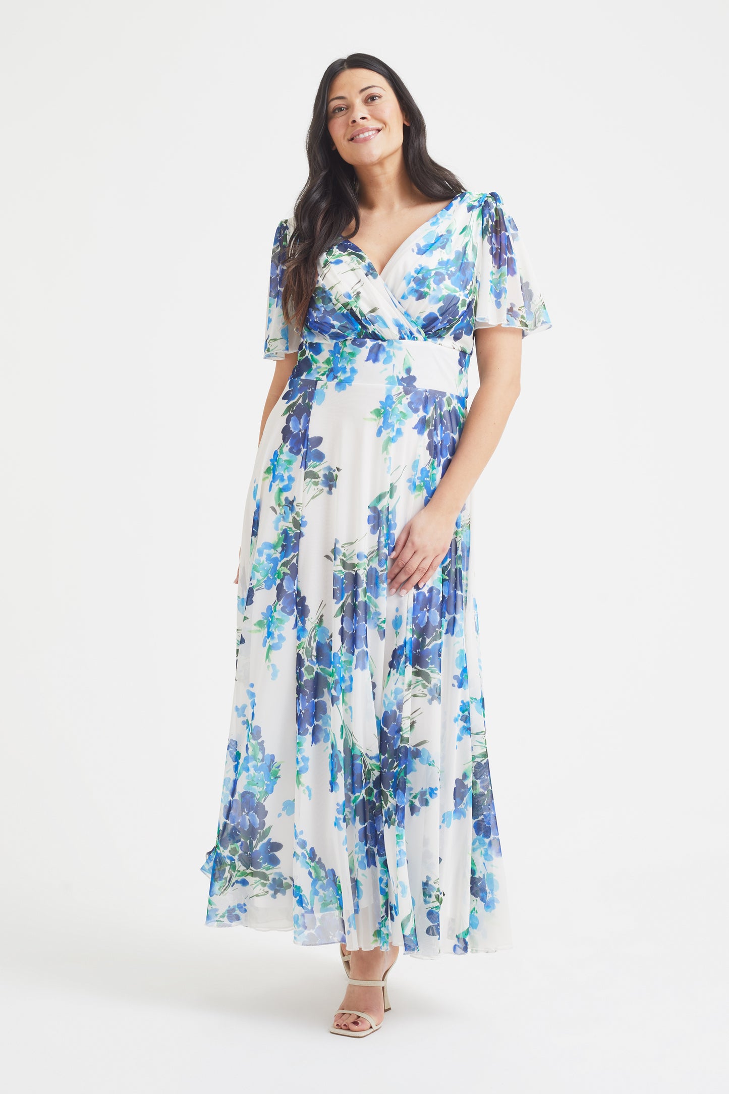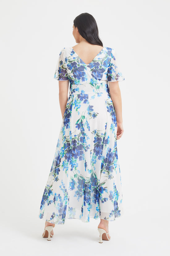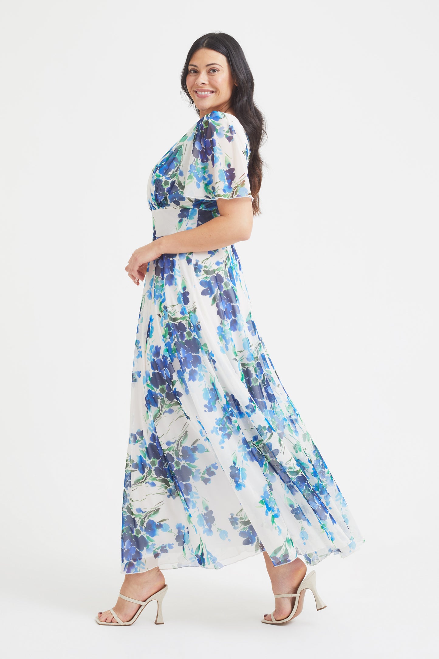 Isabelle Ivory Blue Float Sleeve Maxi Dress