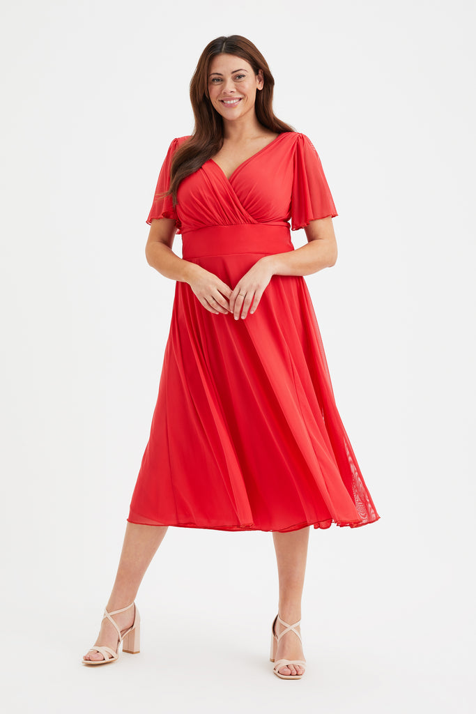 The Victoria Bottle Green Angel Sleeve Mesh Midi Dress, is designed in a beautiful POWERFIT® mesh - a fabric that breathes. This dress comes with a MagicBand®, built in corset to help accentuate curves and bring out that unique Scarlett & Jo hourglass shape. The deep V-neck wrap creates a flattering feminine silhouette. This timeless fashion piece is fully lined and comes with angel sleeves to cover the upper arms. There are detachable shoulder pads per your preference.