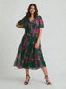 Victoria Green Pink Angel Sleeve Mesh Long Midi Dress
