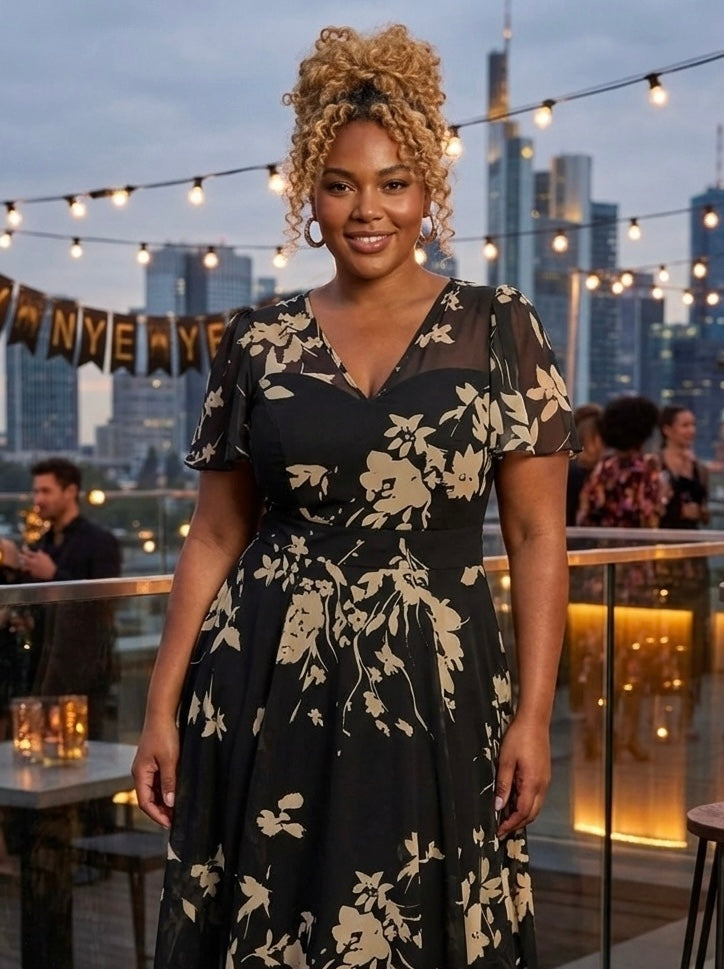 100's of women were introduced to Scarlett & Jo through the original Tilly dress. Treat yourself to a gorgeous updated print Tilly Hi-Lo Dress. It is extraordinary beautiful floral print, with a V front and shaped lined sweetheart detail. This is a stunning fully lined dress that does not disappoint with the tones of this signature print. The dress that is designed to breathe confidence as it is made in our POWERFIT® stretch mesh features a gathered 1940s shoulder line and pretty angel sleeves to give upper arm coverage. Designed with our inbuilt MagicBand® to give you that unmistakable Scarlett and Jo silhouette so curves are elegantly accentuated and hidden support is provided. The beautiful dress skirt drapes gracefully to the ground with a Hi-Lo effect. Perfect for any social event from wedding guest dress to prom dress to party dress.