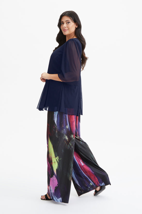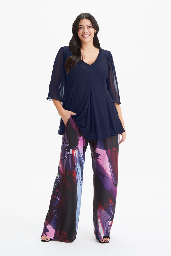 Navy Pleated V Neck Tunic