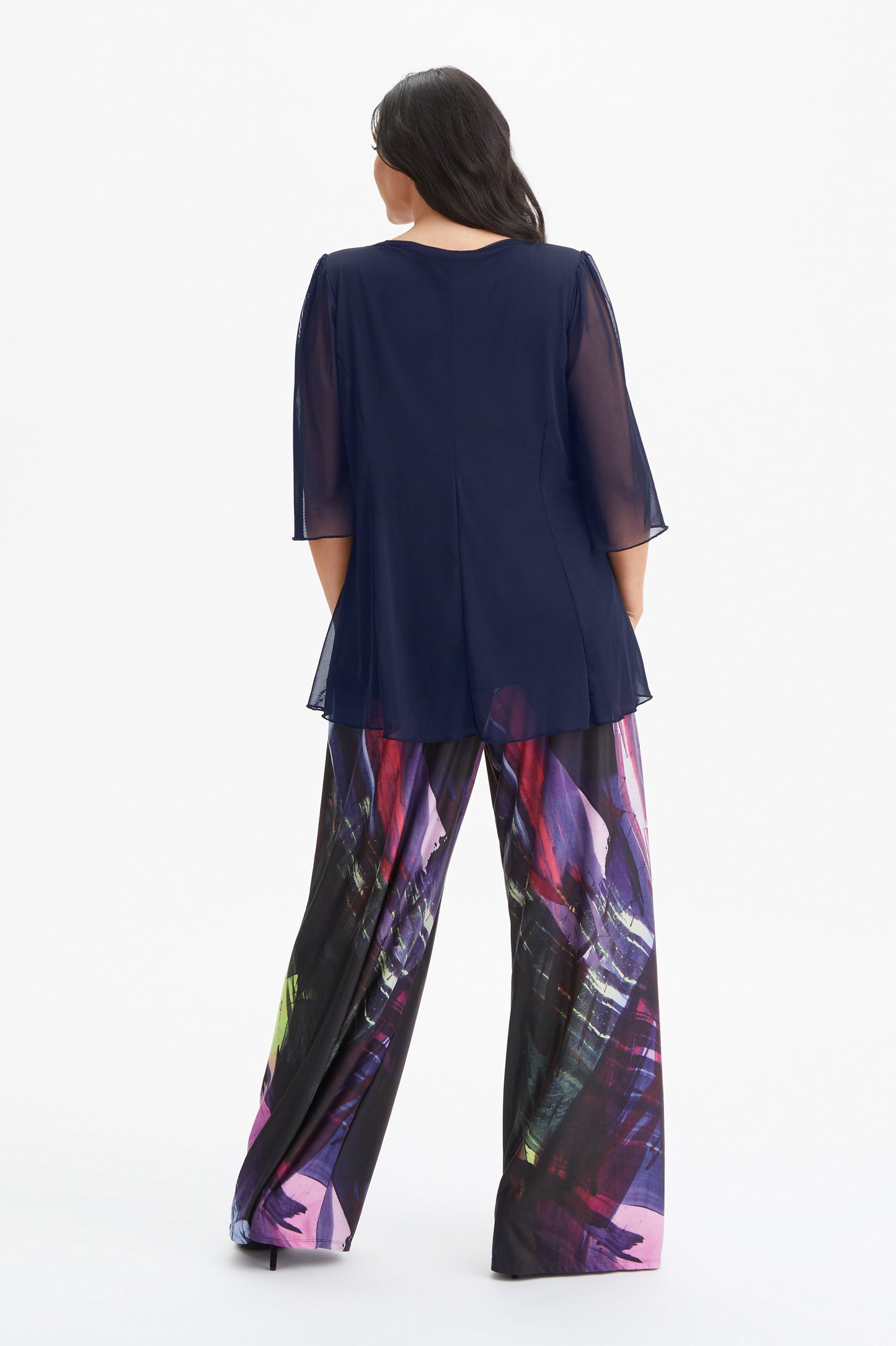 A very pretty princess line flowing V neck tunic made in POWERFIT® soft stretch mesh and fully lined. Featuring a flattering three quarter length sleeve, soft invert pleat front for a gentle flare and sweep, a very good length and flow to enhance comfort and confidence in wear.