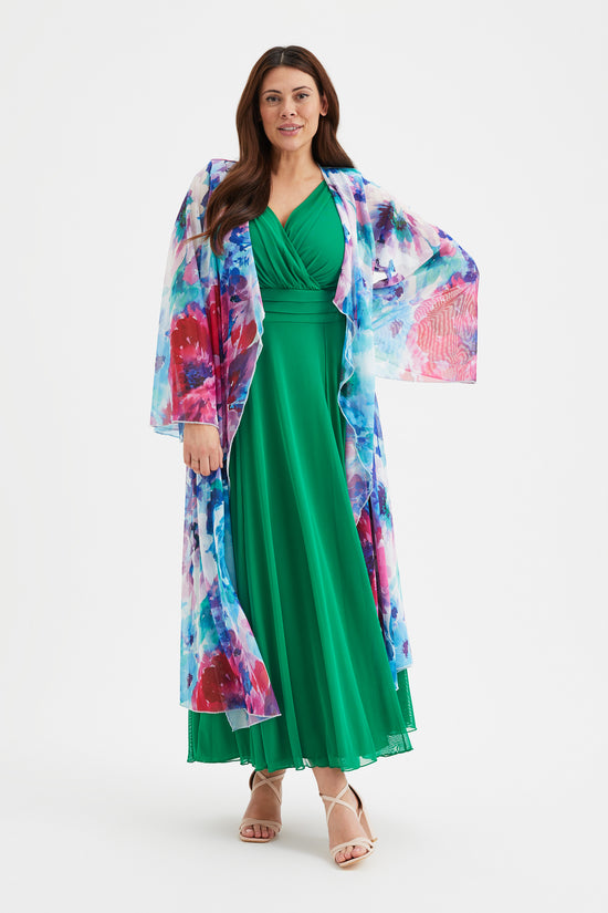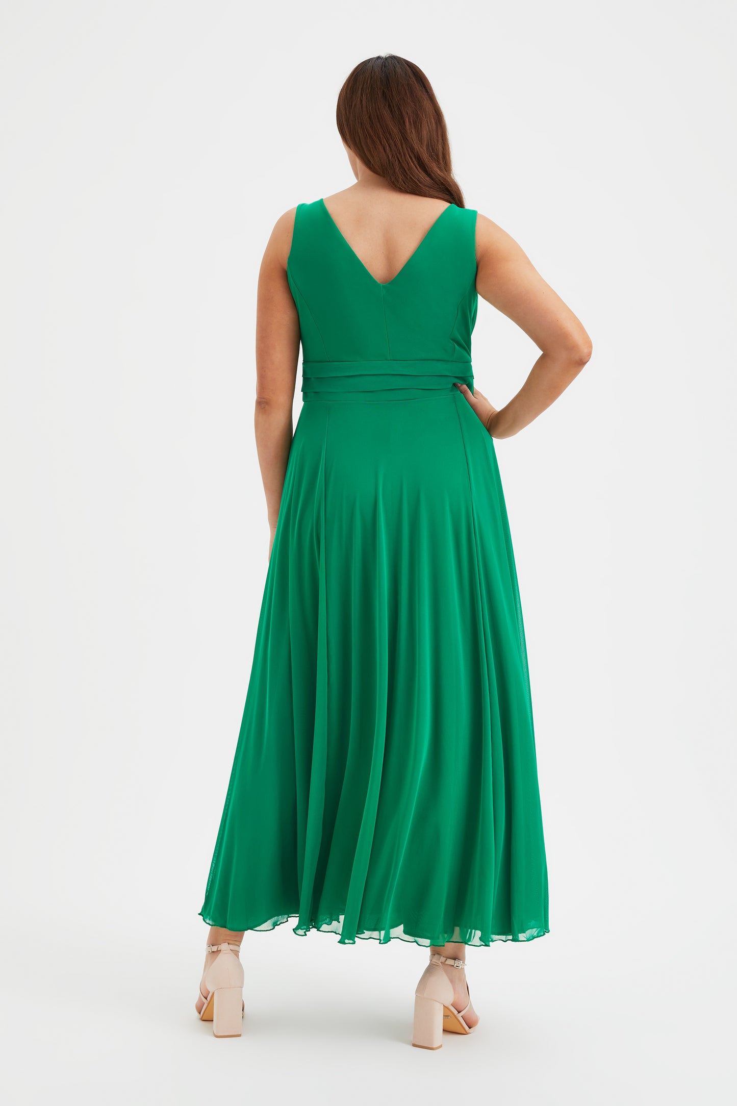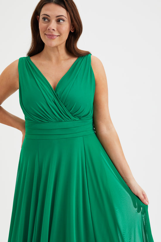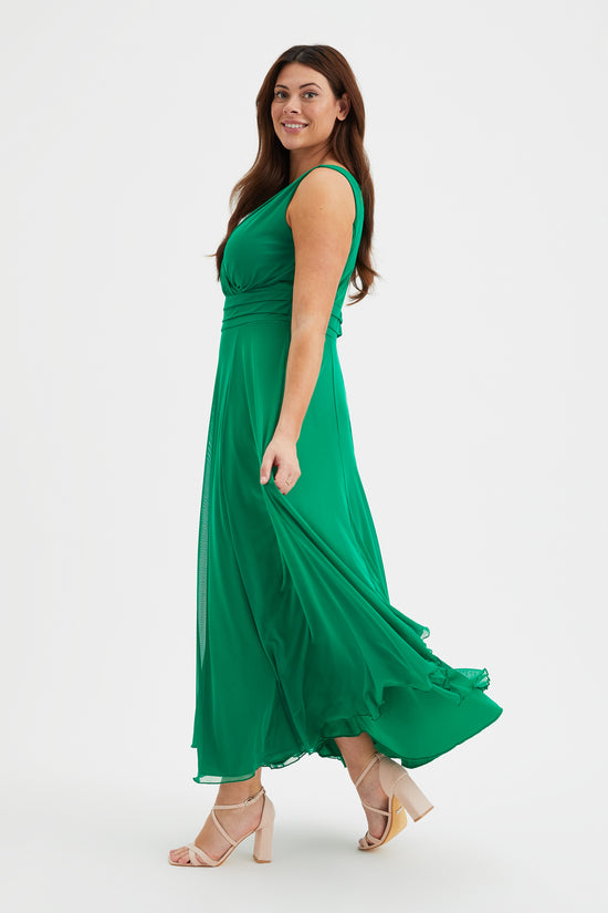 Here we have Kayleigh donning the beautiful and flattering emerald green maxi dress made in our POWERFIT® soft and flowy stretch mesh. This is the seminal Scarlett & Jo design that has led to the creation of the unmistakable Scarlett & Jo look.  Featuring an elegant V neck wrap front and the original pleat MagicBand® to clinch you in at the waist. Perfect for any time of the year, dressed up or down. Guaranteed to make you feel elegant and sexy!