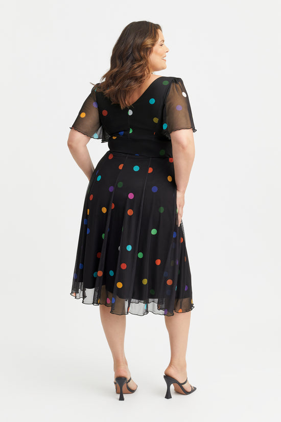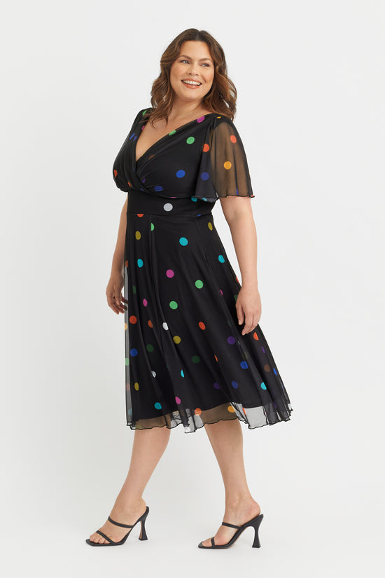 Victoria Multidot Angel Sleeve Mesh Midi Dress