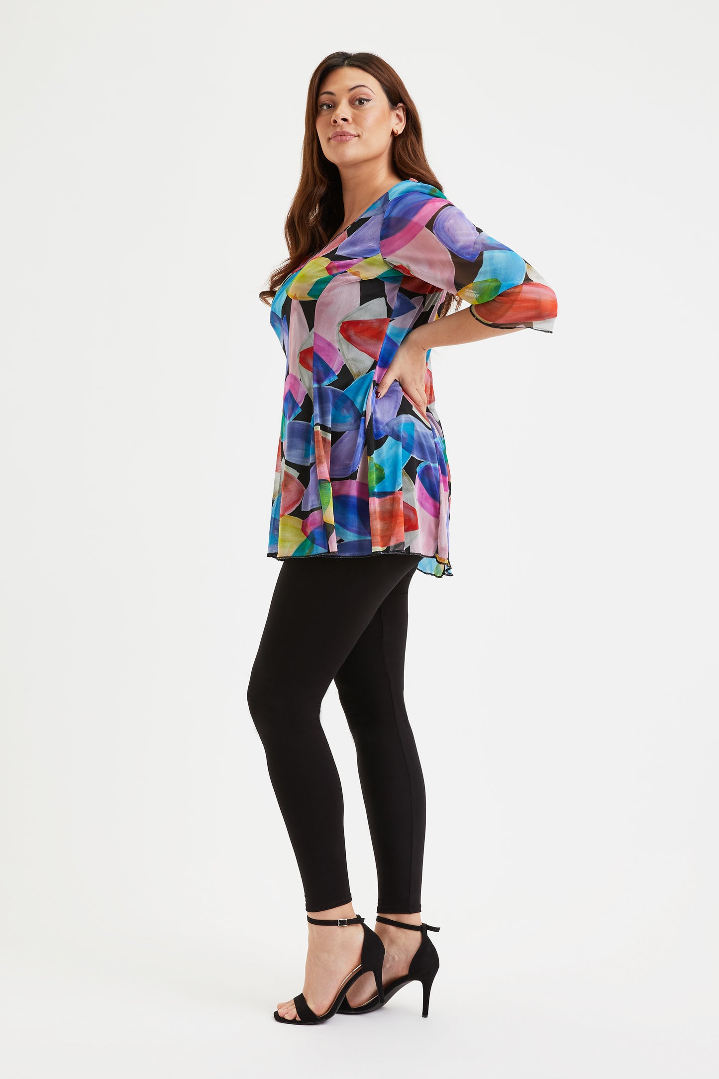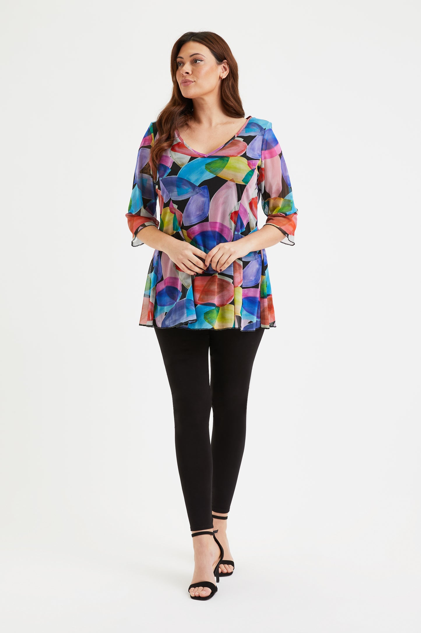 A very pretty princess line print flowing V neck tunic made in POWERFIT® soft stretch mesh and fully lined. Featuring a flattering elbow length sleeve, a very good length and flow to enhance comfort and confidence in wear.
