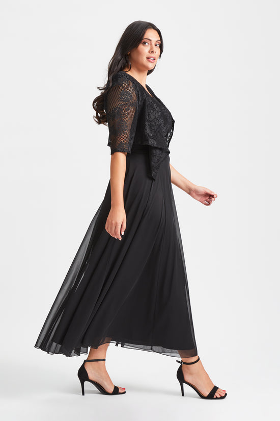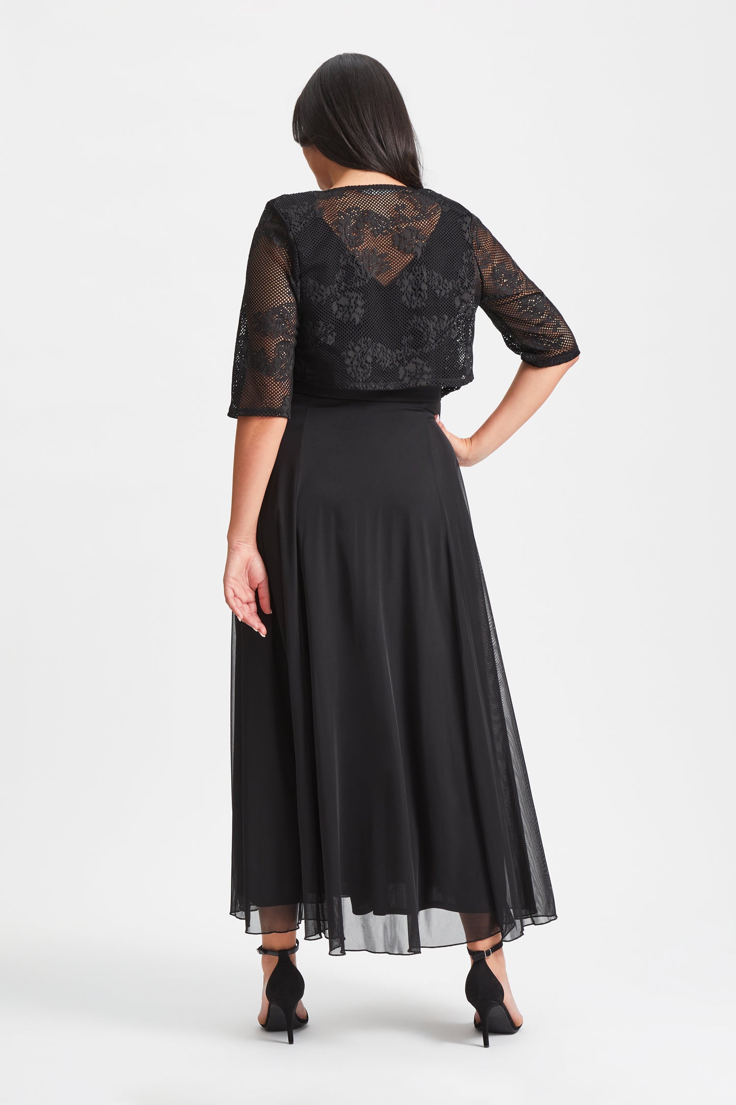 Softly structured, this piece is great for days and evenings when you need extra coverage. The layered waterfall shrug is perfect to wear with our dresses. Made in a POWERFIT® mesh.
