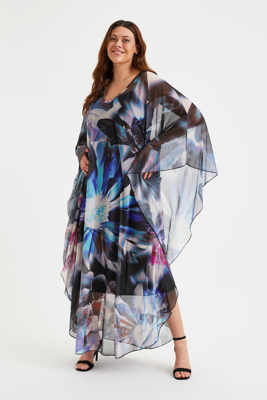 The simply luxurious Maxi Kaftan is inspired by the late 1960s and early 1970s Hollywood leisure and pleasure lifestyle. Fashioned in super soft POWERFIT® mesh, this dress features a slip and is tailored to provide shape and extravagance whilst providing shoulder to the floor and complete arm coverage. A beautiful piece adorned by a beautiful print;