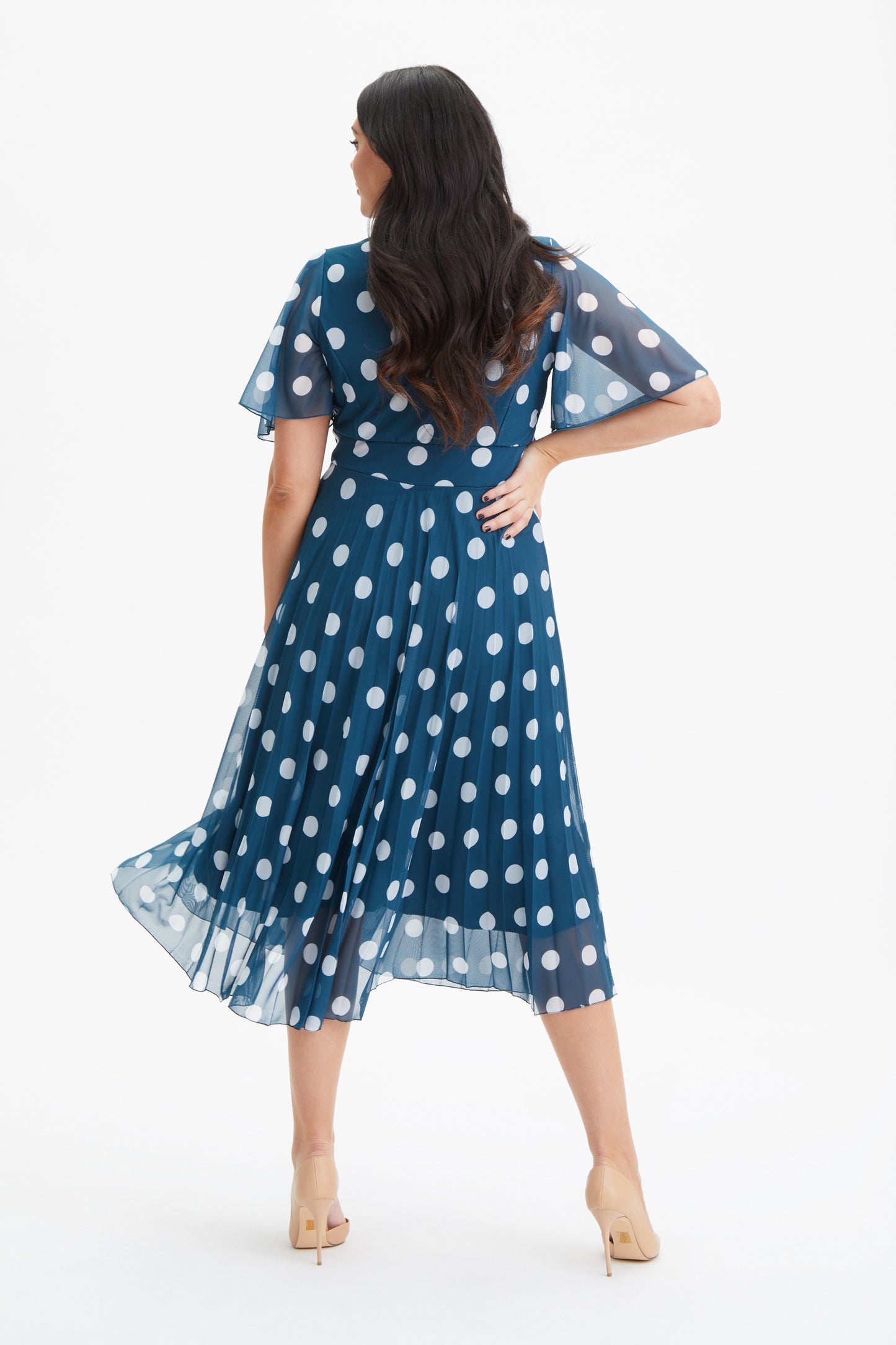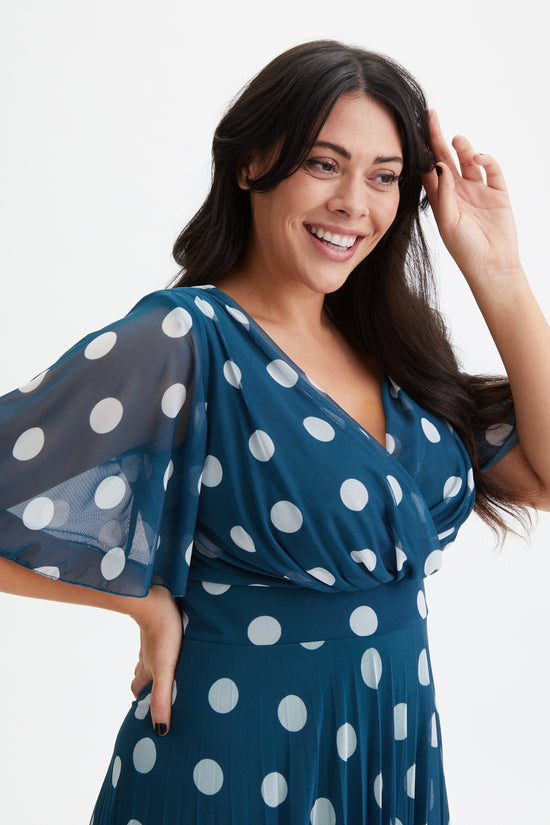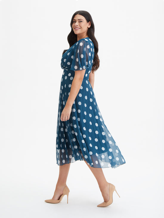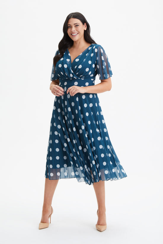Carole Teal Ivory Wrap Bodice Sunray Pleated Skirt Midi Dress