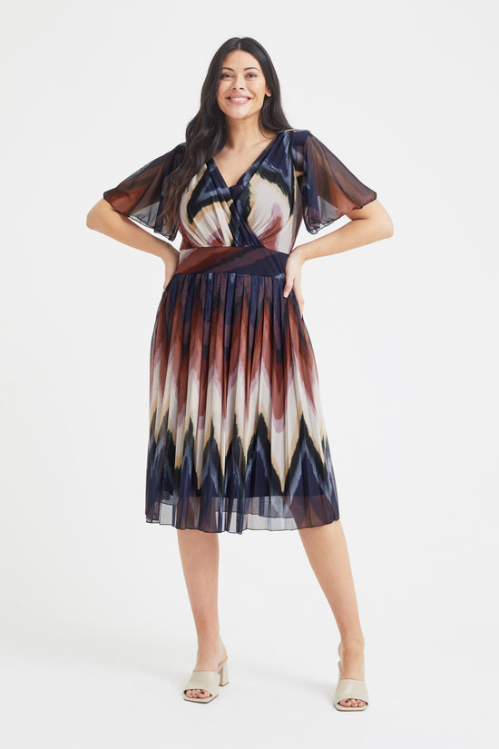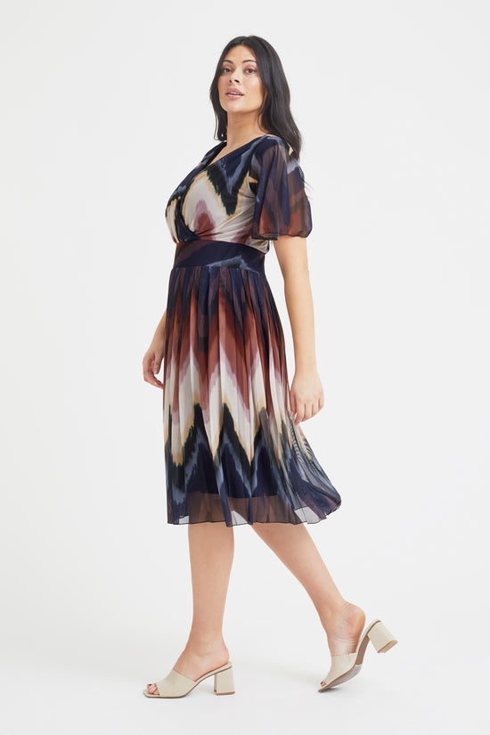 Cleo French Geometric Print Knife Pleated Skirt Midi Dress
