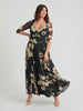 Elizabeth Black Cream Print Mesh Bolero Wrap Bodice Maxi Gown