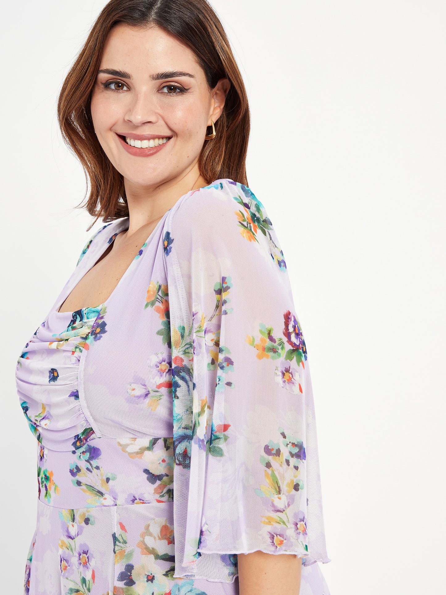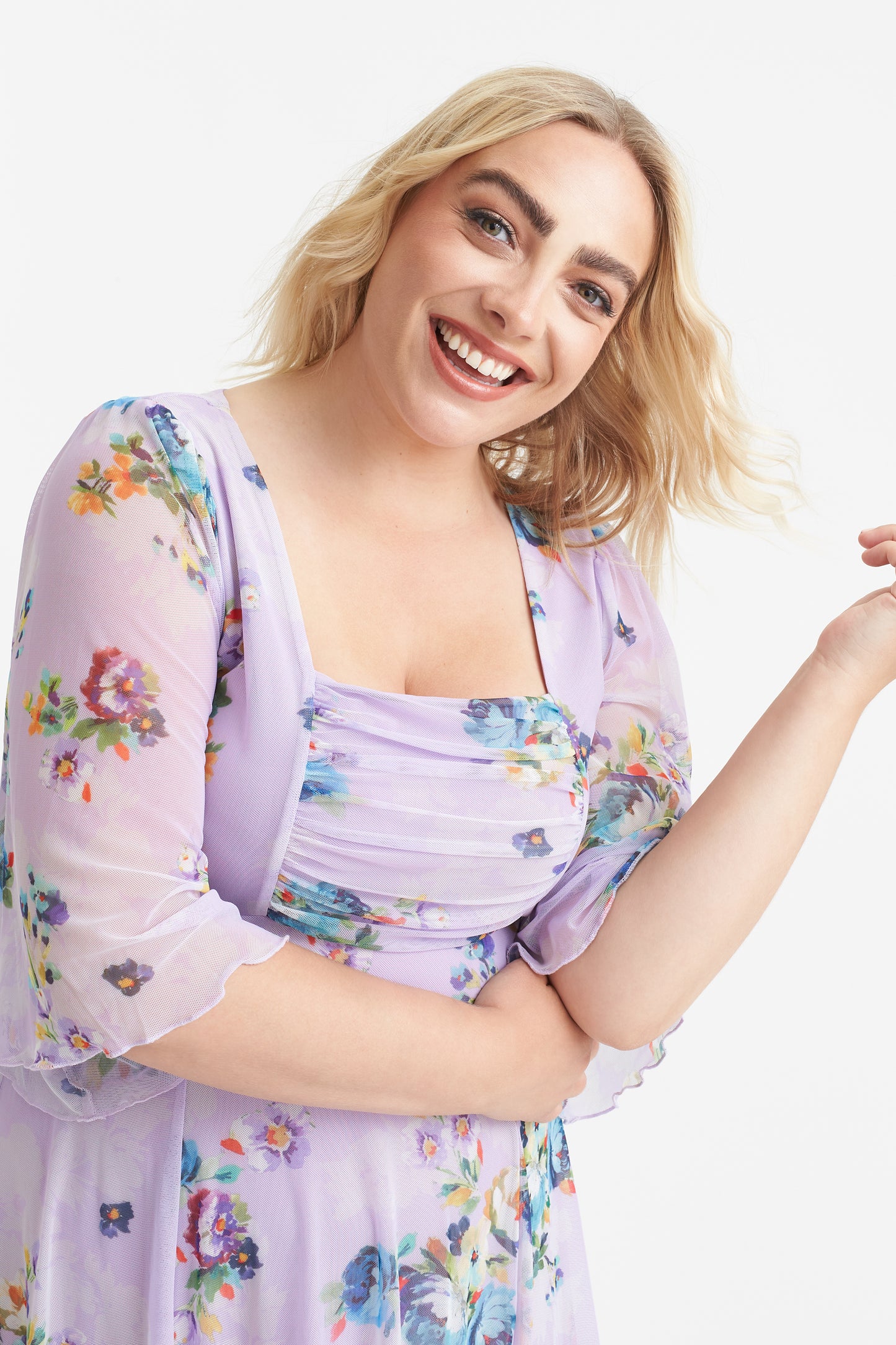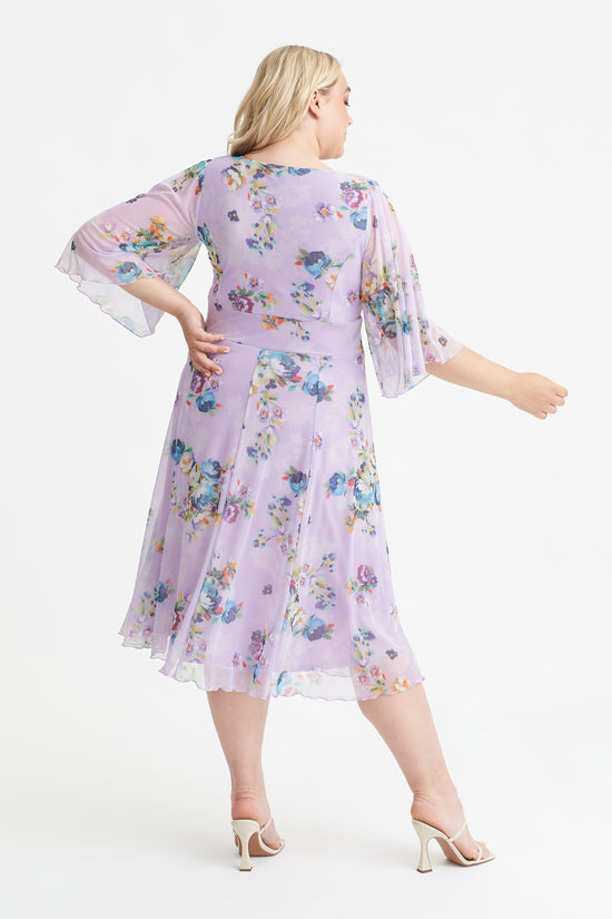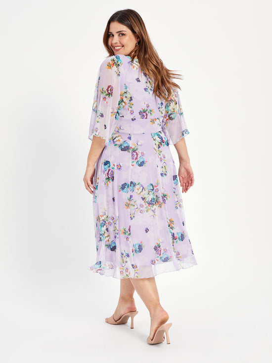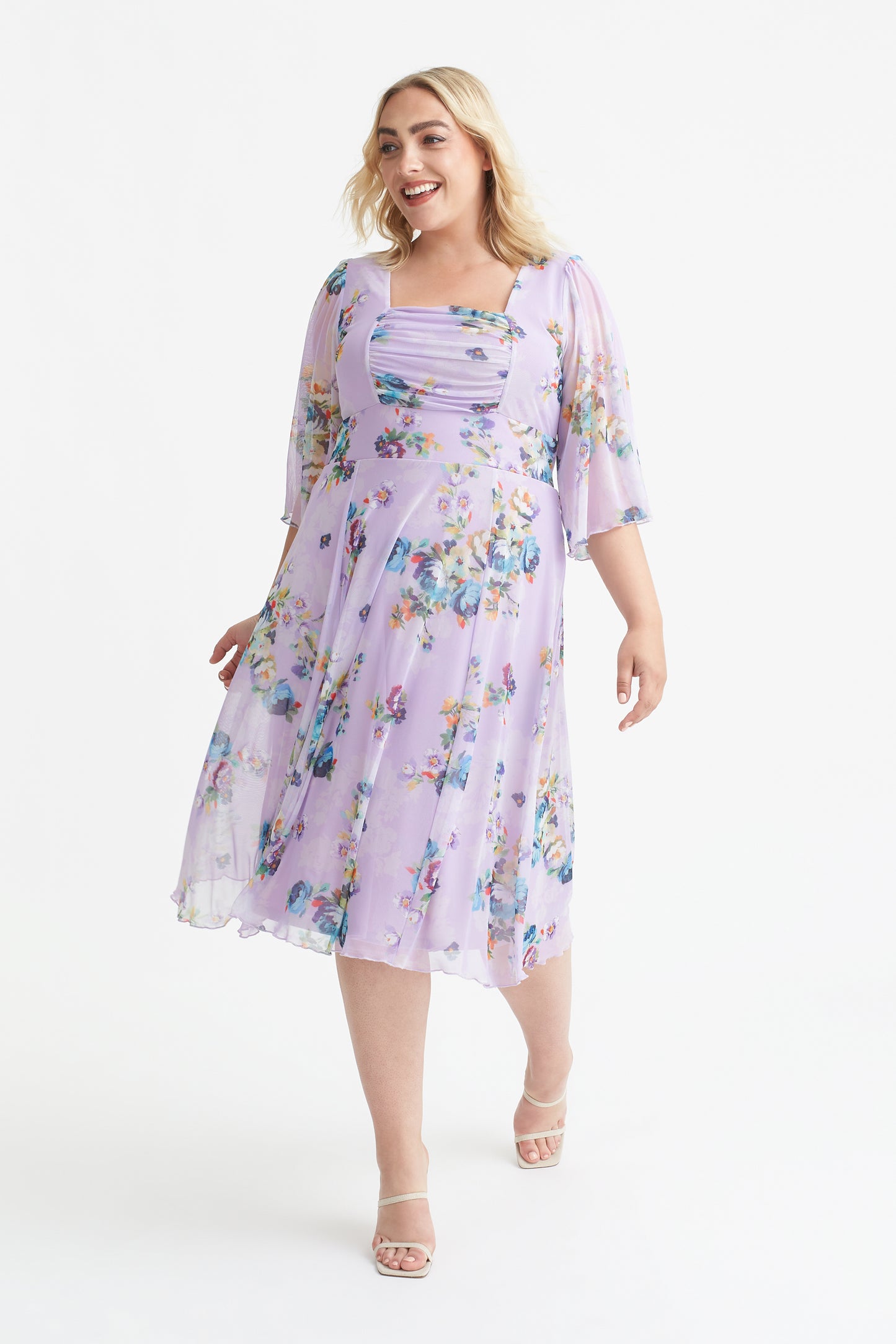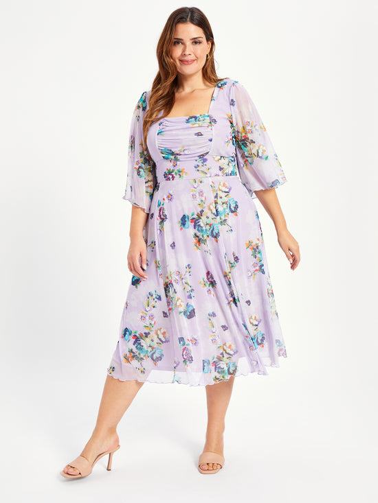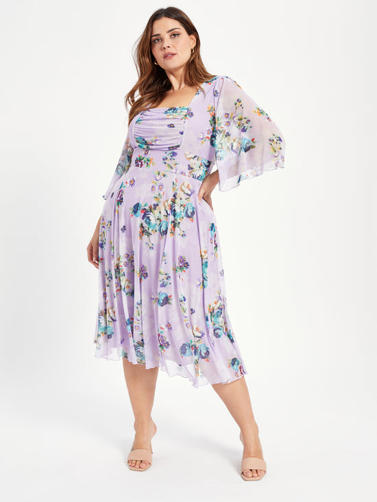 Genevieve Lilac Multi Ruched Bodice Midi Dress