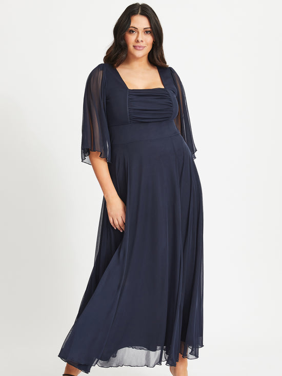 Genie Navy Ruched Bodice Maxi Dress
