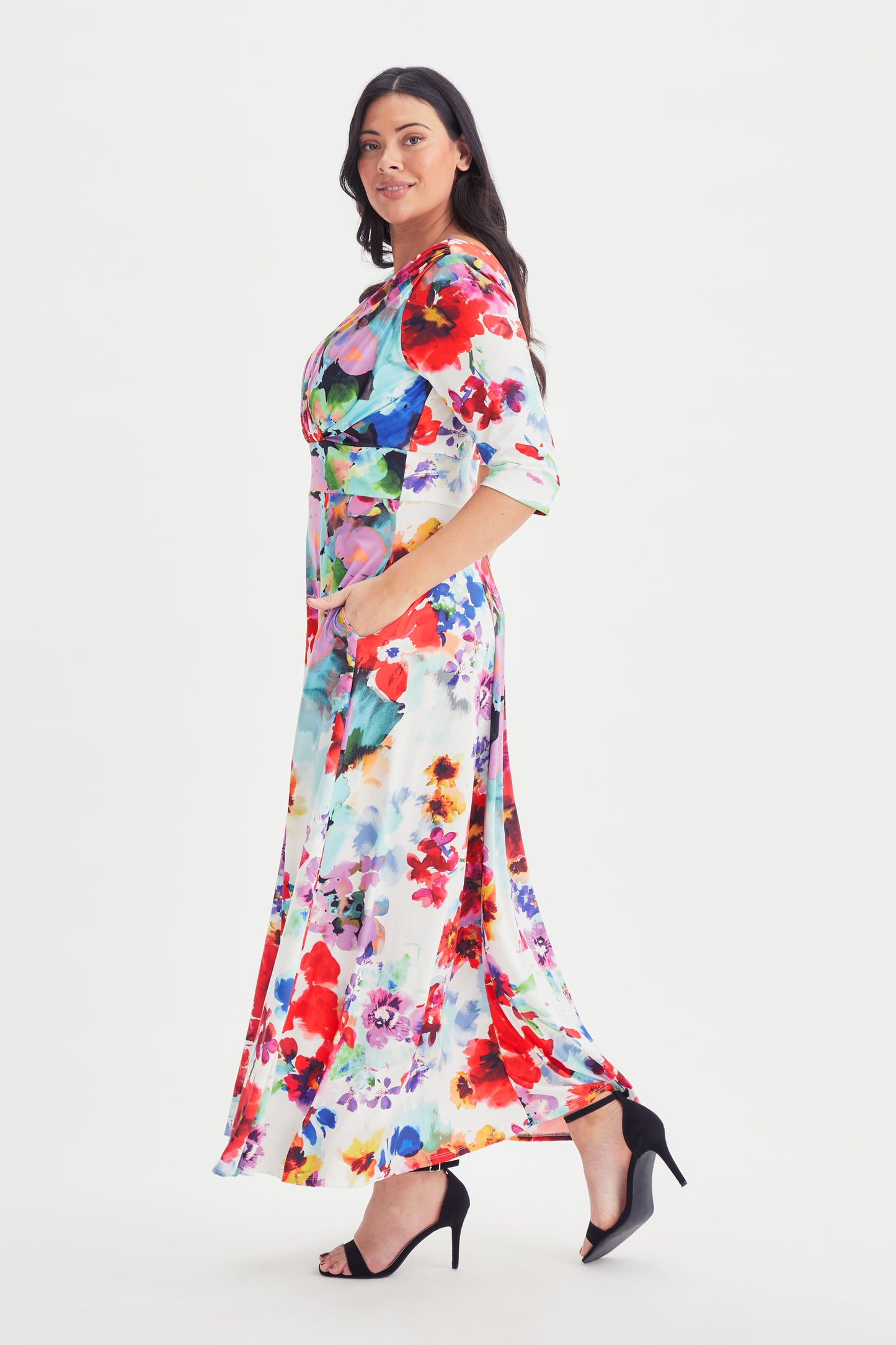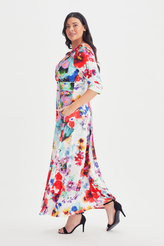 Isabella Ivory Multi Print 3/4 Sleeve Jersey Maxi Dress