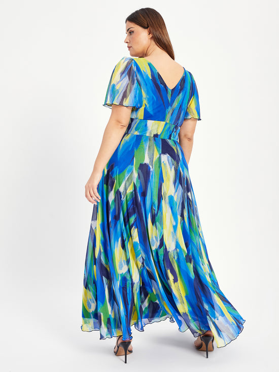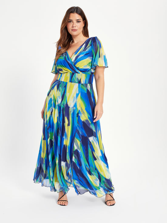 Isabelle Blue Yellow Float Sleeve Maxi Dress