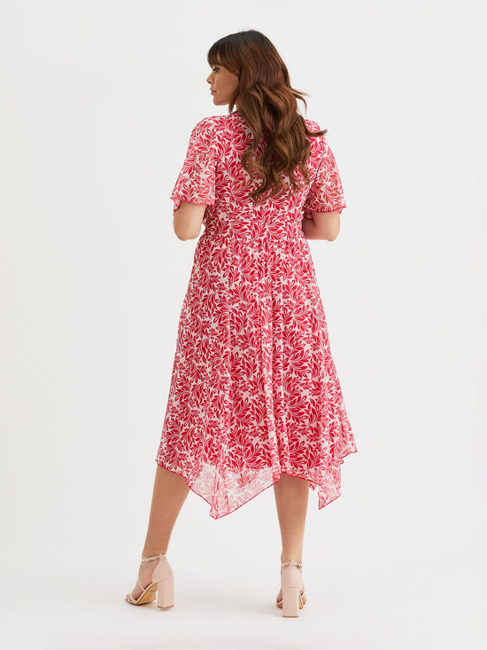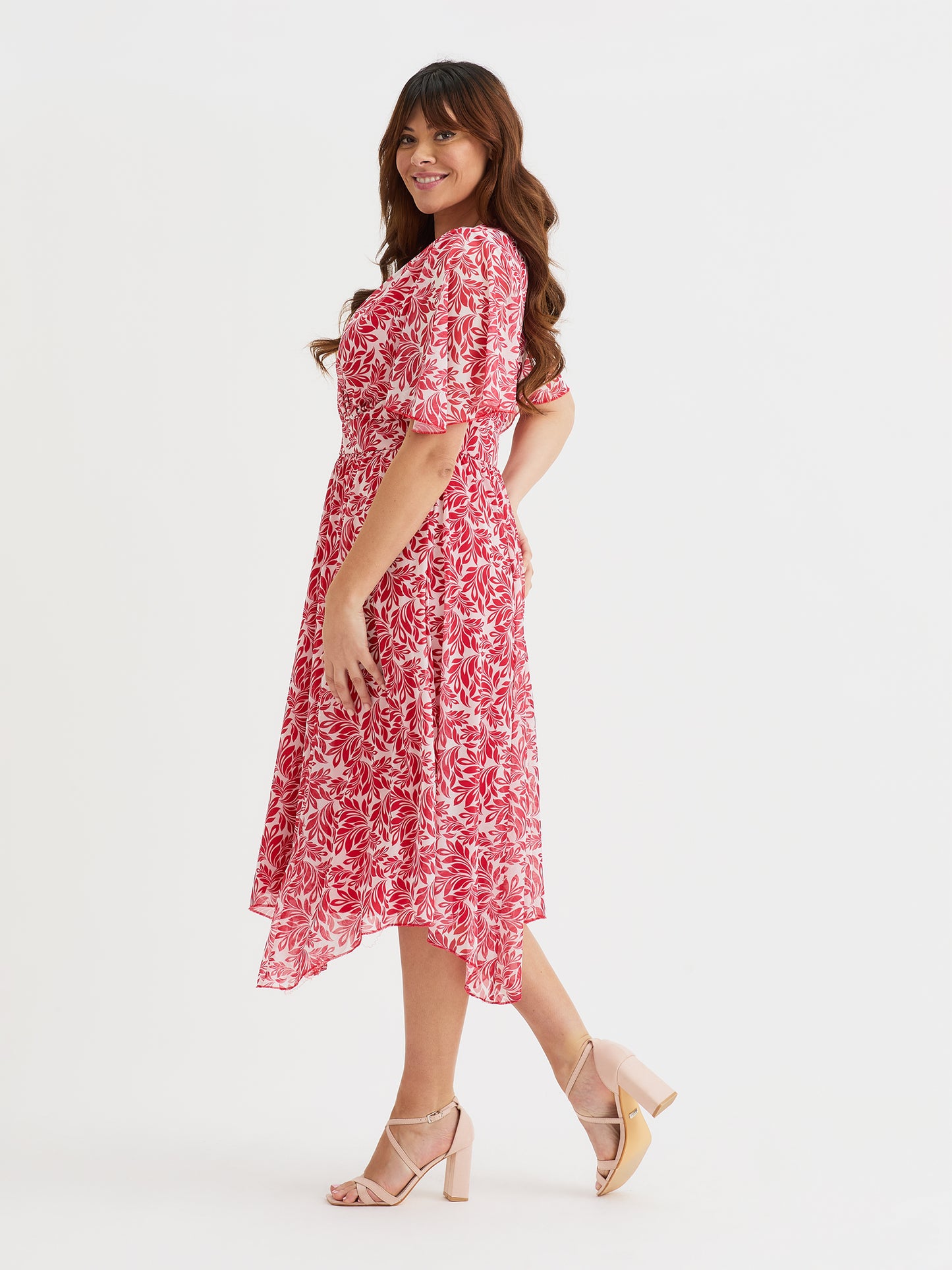 The Julie Red Batique Hanky Hem Dress is made in a super soft stretch POWERFIT® mesh, a fabric that breathes. The beautifully shaped crossover bodice together with a full handkerchief hem skirt elegantly falls at a midi length on taller ladies and maxi length for shorter ladies. Finished with a new flattering handkerchief sleeve and elasticated MagicBand® to cinch you in with that Scarlett & Jo signature shape.