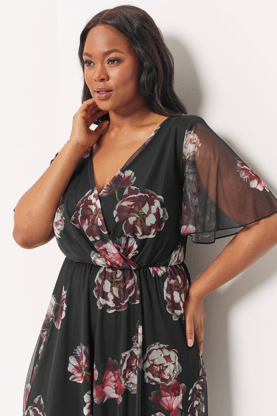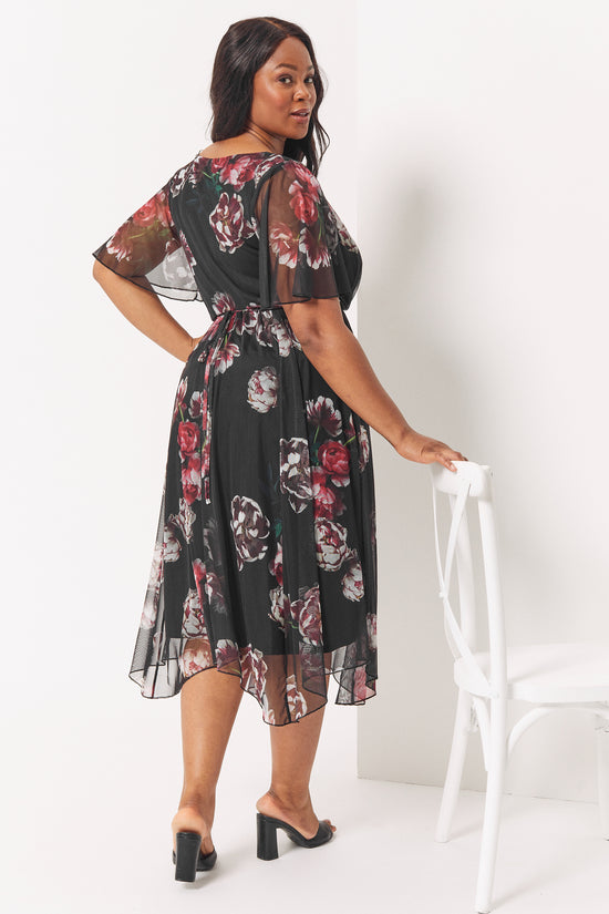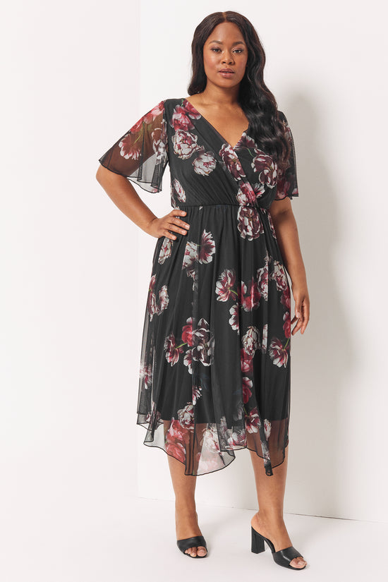 This is a fully lined dress and is crafted from a super soft printed stretch POWERFIT® mesh fabric. The beautifully shaped crossover bodice together with a full hanky hem skirt elegantly falls at a midi length on taller ladies and maxi length for shorter ladies. Finished with angel sleeves and elasticated MagicBand® to cinch you in.