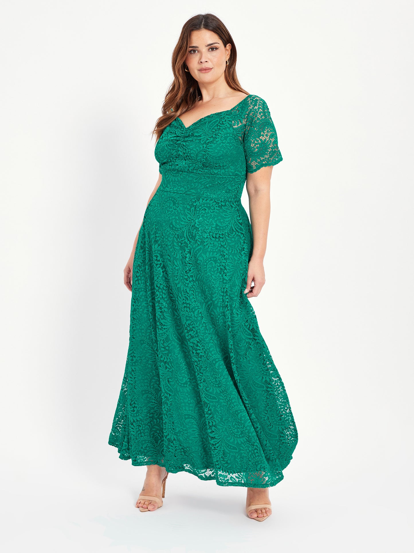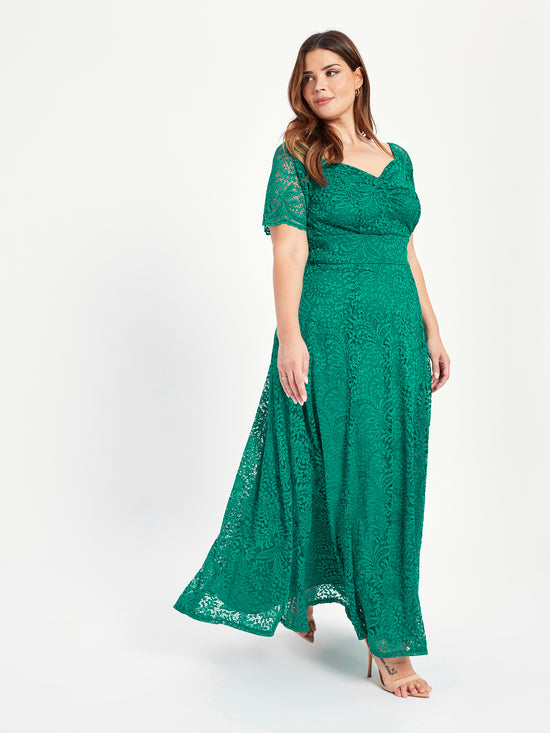 The Samantha is a frantically beautiful and flattering ruched sweetheart neck lace maxi dress. The important feature of this dress as it can be worn on and off the shoulder. An elegant V neck front and an in-built elasticated Scarlett & Jo waist corset band  cinches you in at the waist. Perfect for any time of the year, A dress worthy of a princess or a pop star. Guaranteed to make you feel elegant.