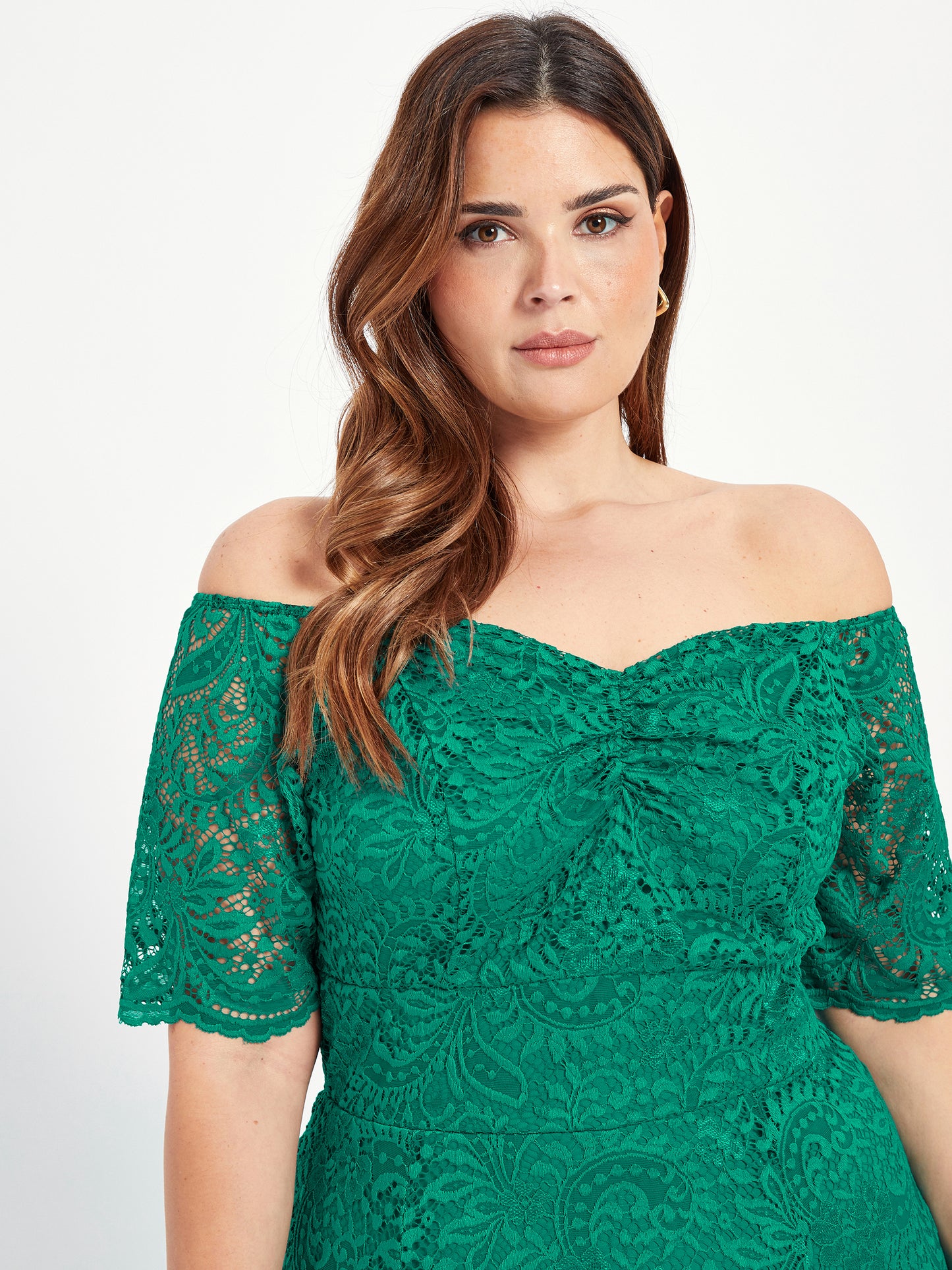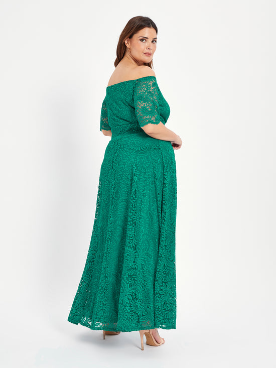 Samantha Off Shoulder Plus Maxi Dress in Blue Lace