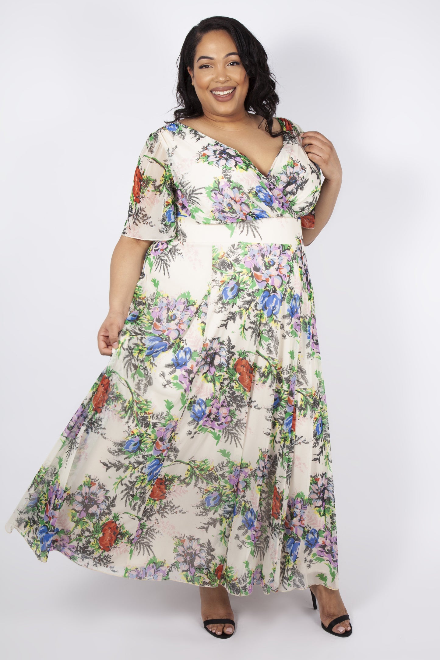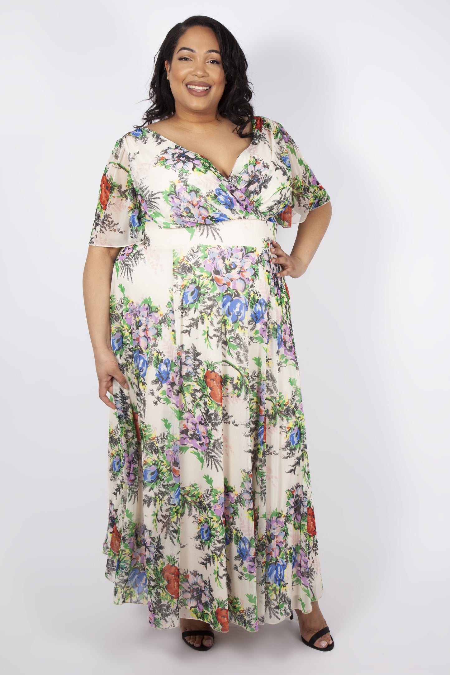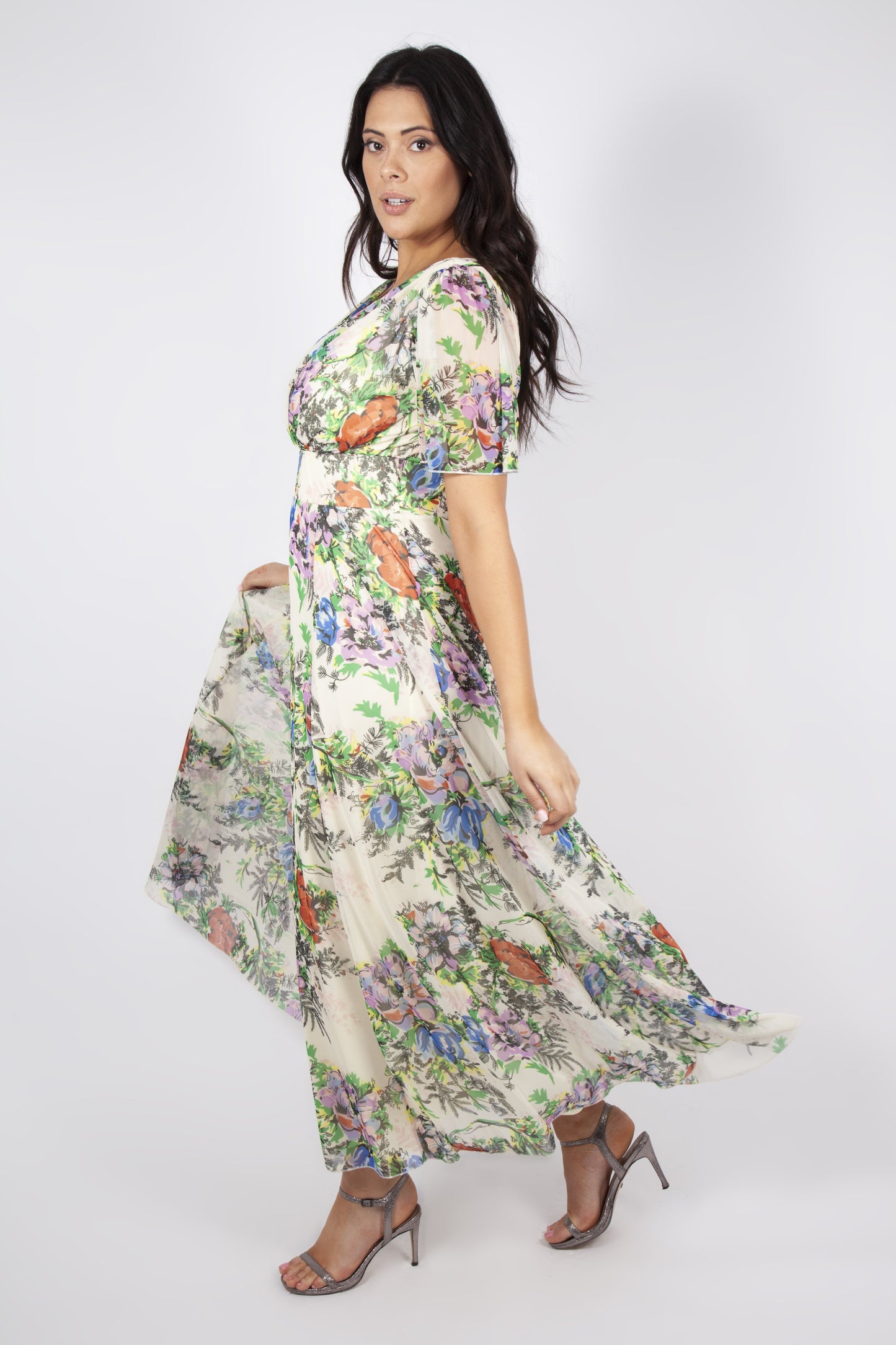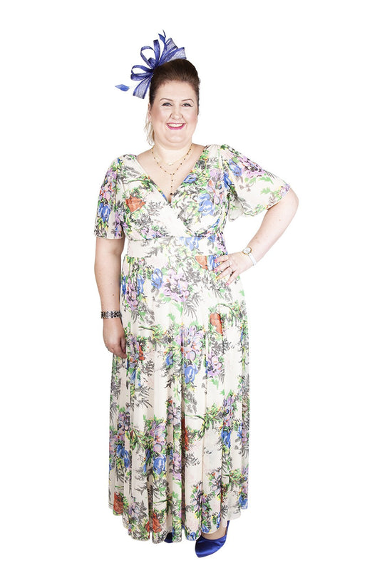 This Mia Cream Float Sleeve Maxi Dress is the ideal choice for Summer events. Float sleeves create an angelic yet exquisite look. The floral print on ivory exudes a classy and chic style. With an elasticated, in-built waistband for added support, the hourglass figure is well-represented. A beautiful and elegant piece for occasions.
