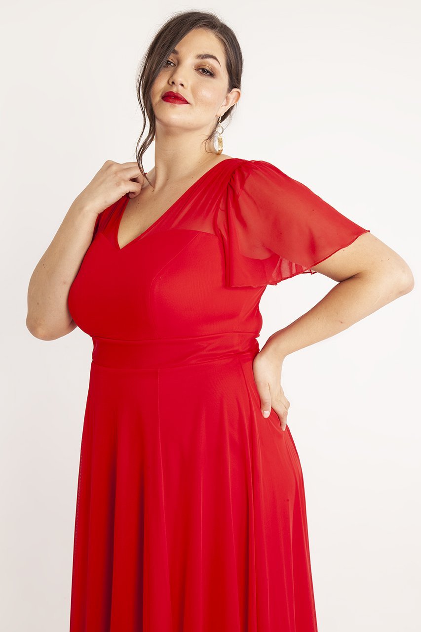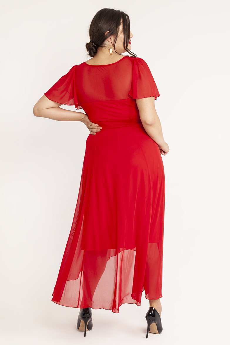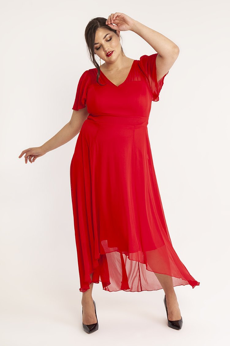 Treat yourself to our gorgeous Tilly Hi-Lo Dress. With sweetheart front detail and a V neckline this stunning dress features a gathered 1940s shoulder line and pretty angel sleeves to give upper arm coverage. Designed with our inbuilt corset magic waistband to give you that unmistakable Scarlett and Jo silhouette so curves are elegantly accentuated and hidden support is provided. The beautiful dress skirt drapes gracefully to the ground with a Hi-Lo effect. Perfect for any social event from wedding guest dress to prom dress to party dress.