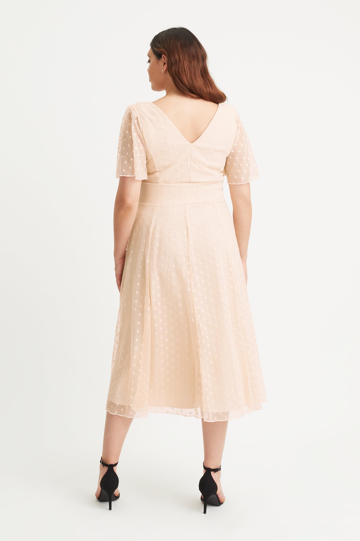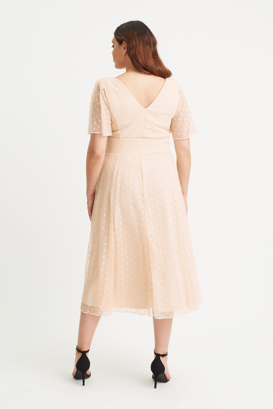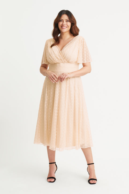 Victoria Cream Dobby Spot Angel Sleeve Mesh Long Midi Dress